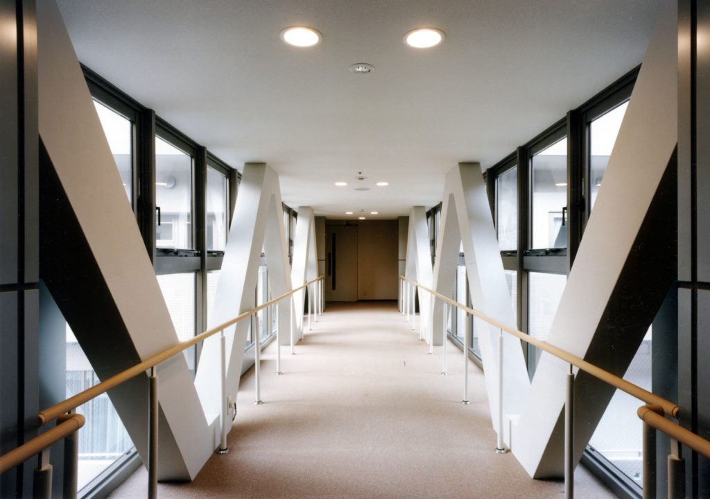 外観は、構造美を生かした力強い斜め柱がモチーフの低層部分と連続したバルコニーの緩やかで流れるような優しい上層部のデザインを特徴としている。